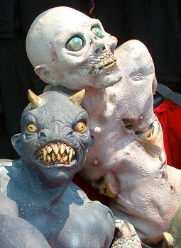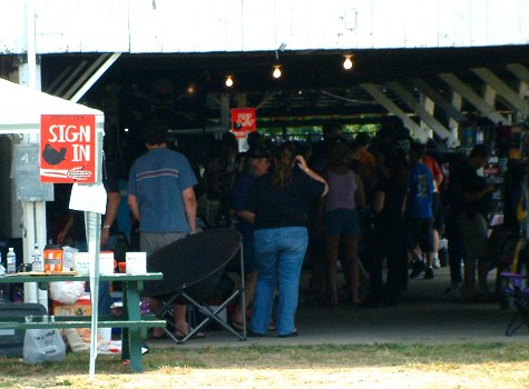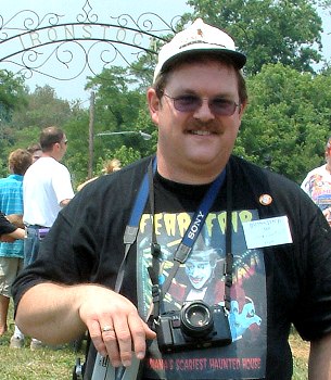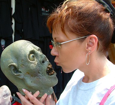 Saturday, June 25 was hot. I mean it was wring-your-socks-out in the bathtub hot. Tell City, Indiana, site of southern Indiana's annual Halloween Haunters conference was so hot that I saw a crank ghost fanning herself with a bat. Security had to have a word with the zombies who kept stuffing their heads into people's drink coolers. Just their heads. Heat notwithstanding, the weekend's festivities were a horrifying success. For more Ironstock info, click here. |
