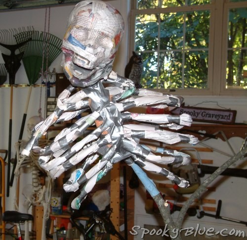 I have to wonder if all this paper rolling will contribute to a future arthritic condition. Rolling newspaper bones is my least favorite part of these projects. Anyone who presents your old pal Spook with a good alternative gets a special prize.